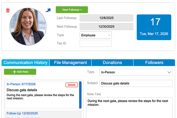 Unified nonprofit CRM with unlimited contacts, companies, and vendors. Smart profiles, donation tracking, automated thank-yous, and powerful campaigns – all in one intuitive hub.
